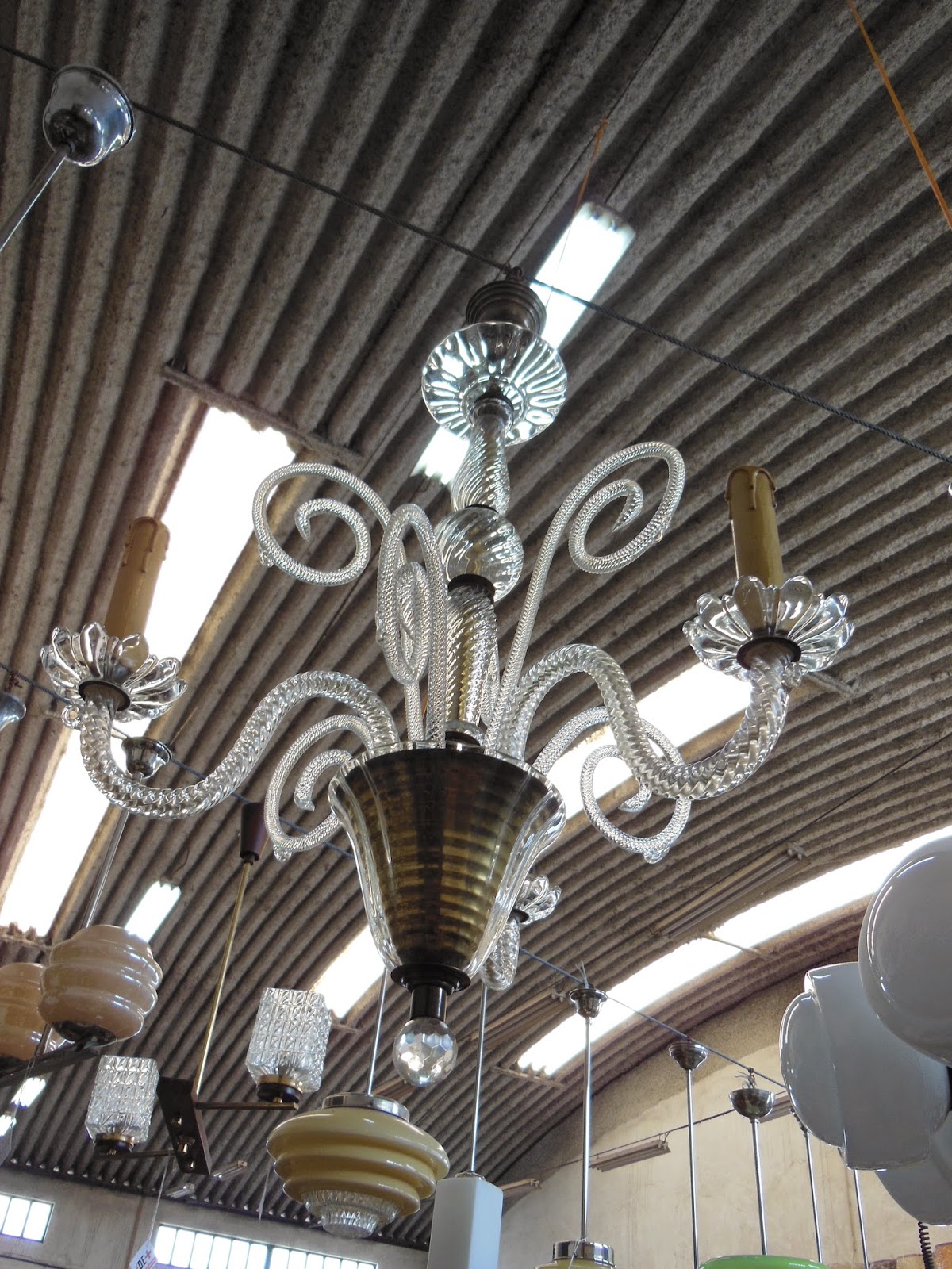 Candeeiro em vidro, com 3 lumes, e caracóis em vidro. Clássico antigo preço 325.00€